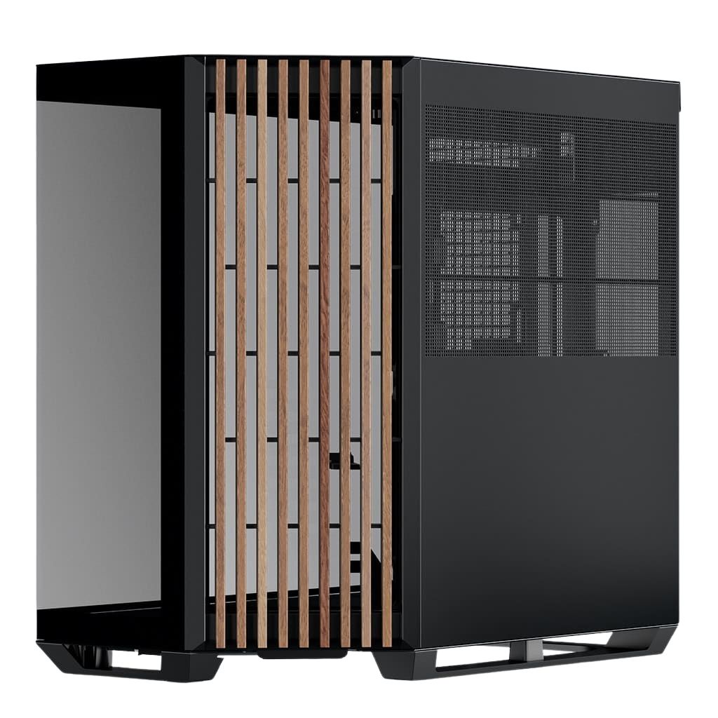 | Features: | Stylish Design: Premium black and wood finish with tempered glass side panel for a modern look. |