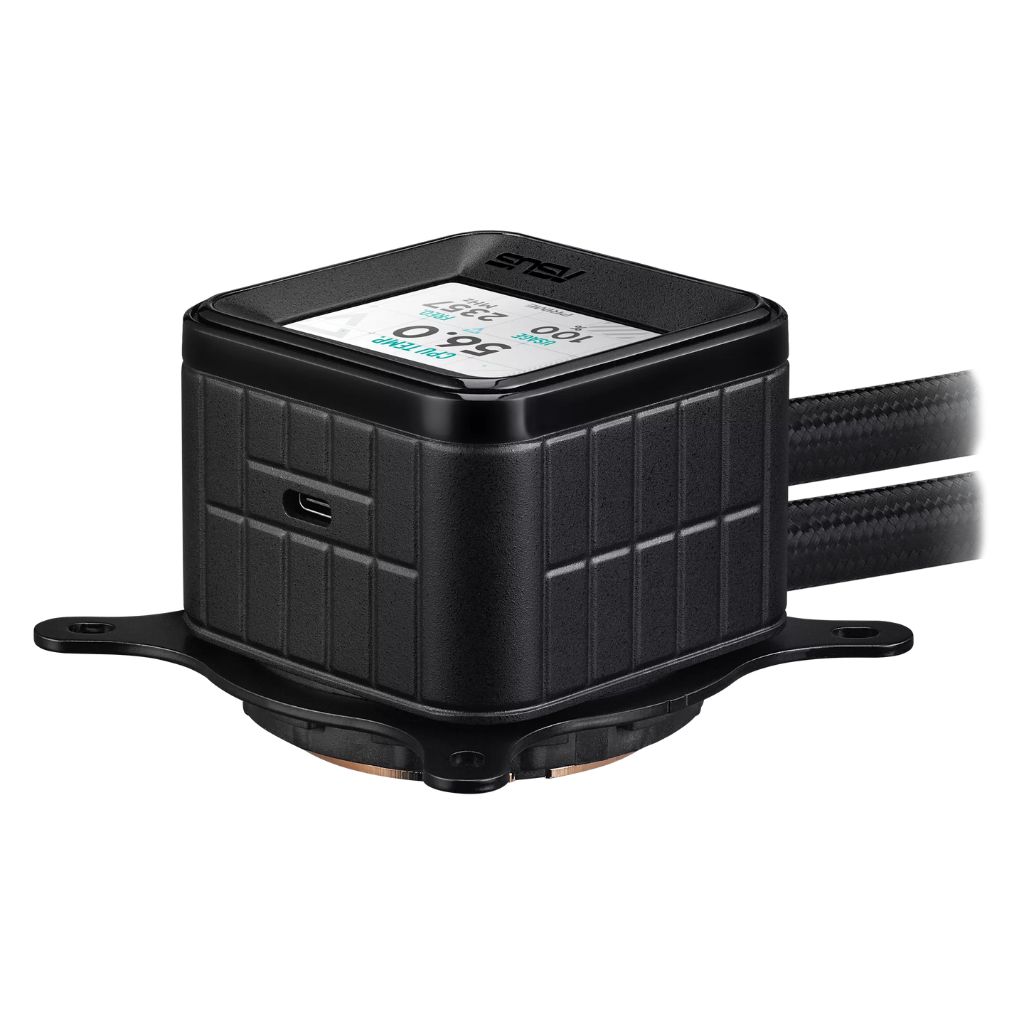 - 2.3″ LCD Screen — Displays real-time CPU and GPU information directly on the pump.