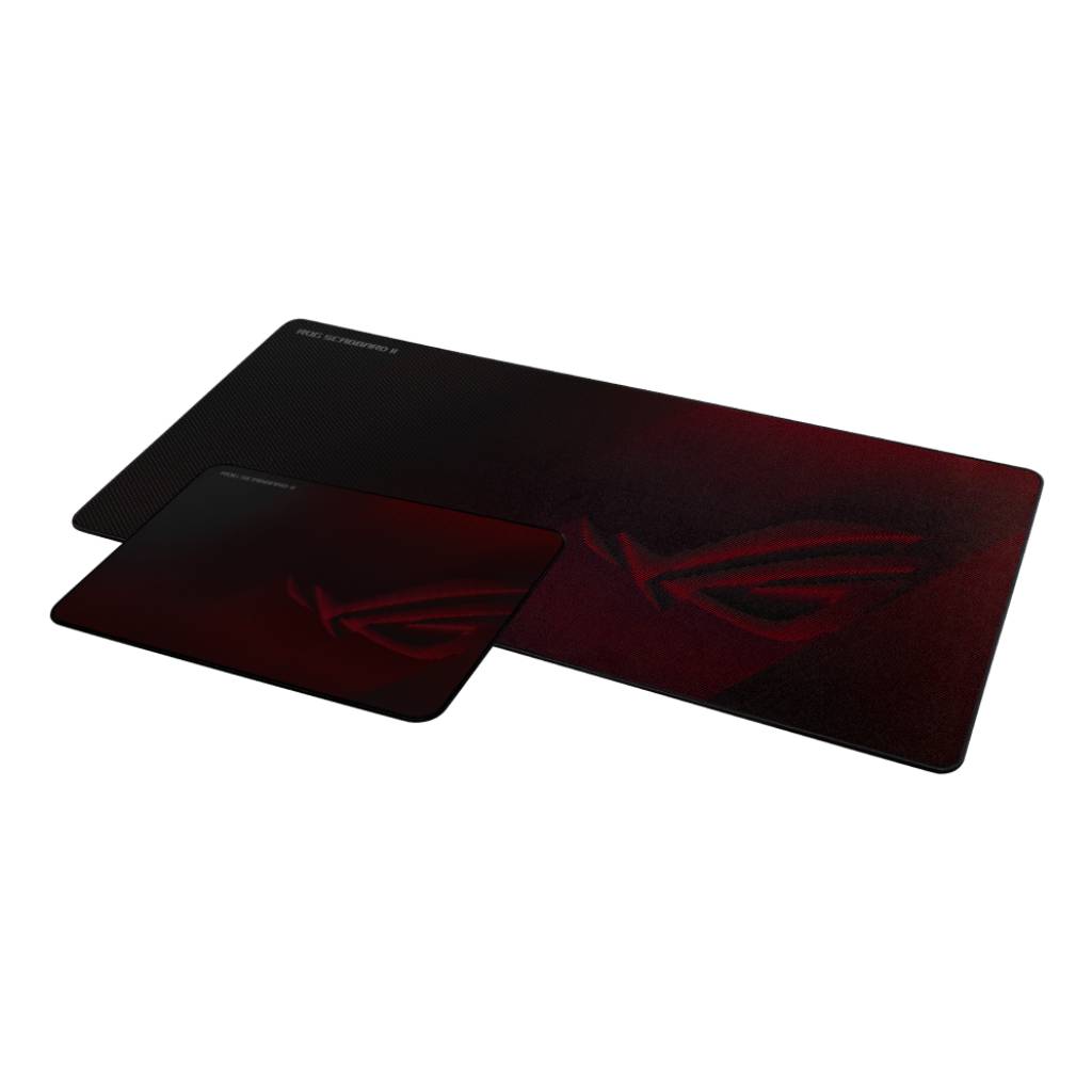 ROG Scabbard II gaming mouse pad (medium and extended sizes) with protective nano coating for a water-, oil-and dust-repellent surface, with anti-fray, flat-stitched edges and a non-slip rubber base