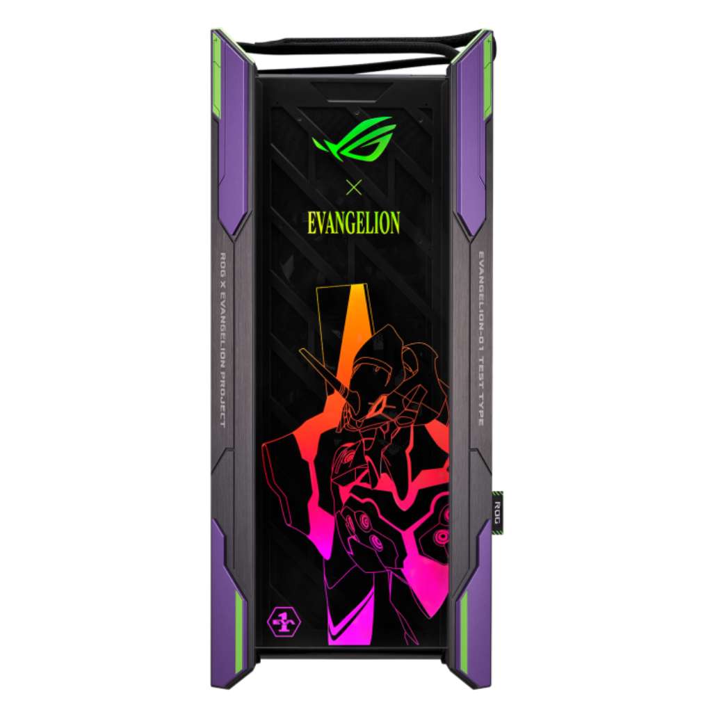- It’s 2022. The Republic of Gamers is launching new equipment for the EVANGELION project. The ROG Strix Helios EVA Edition is a premium mid-tower gaming chassis with three tempered-glass panels, refined aluminum frame, and integrated front-panel RGB lighting. Interior and exterior details have been fashioned to match the aesthetics of the EVA-01 and house the other ROG x EVANGELION components, making it the cornerstone of the collaboration.