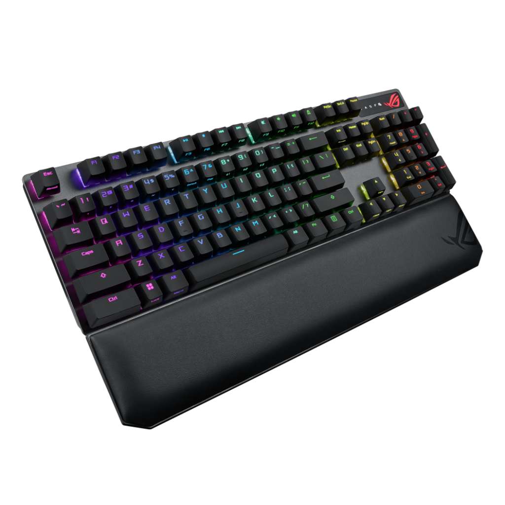 ROG Strix Scope NX Deluxe RGB wireless mechanical gaming keyboard with ROG NX switches, aluminum frame, ergonomic wrist rest, Aura Sync lighting and additional silver WASD for FPS games