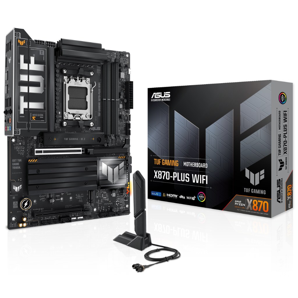 - ASUS TUF GAMING X870-PLUS WIFI takes all the essential elements of the latest AMD Ryzen™ processors and combines them with game-ready features and proven durability.