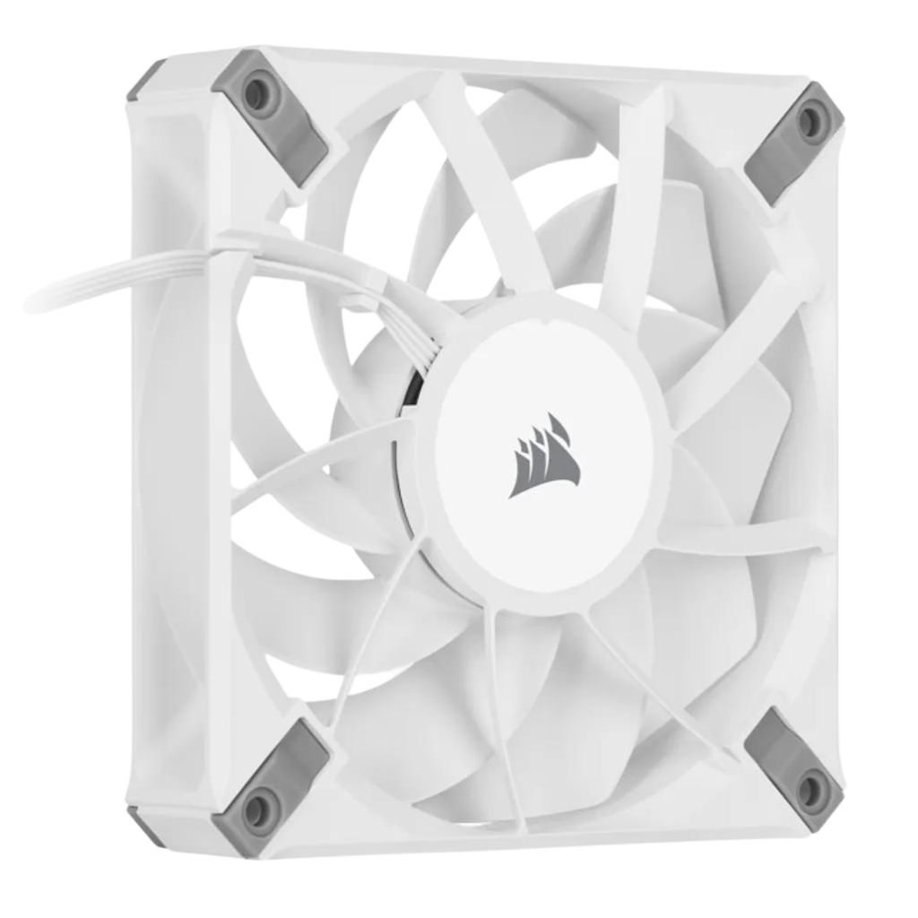 - The CORSAIR AF120 ELITE High-Performance 120mm PWM Fluid Dynamic Bearing Fan – White combines a low-noise design with CORSAIR AirGuide technology for powerful cooling, quiet operation, and exceptional durability.
