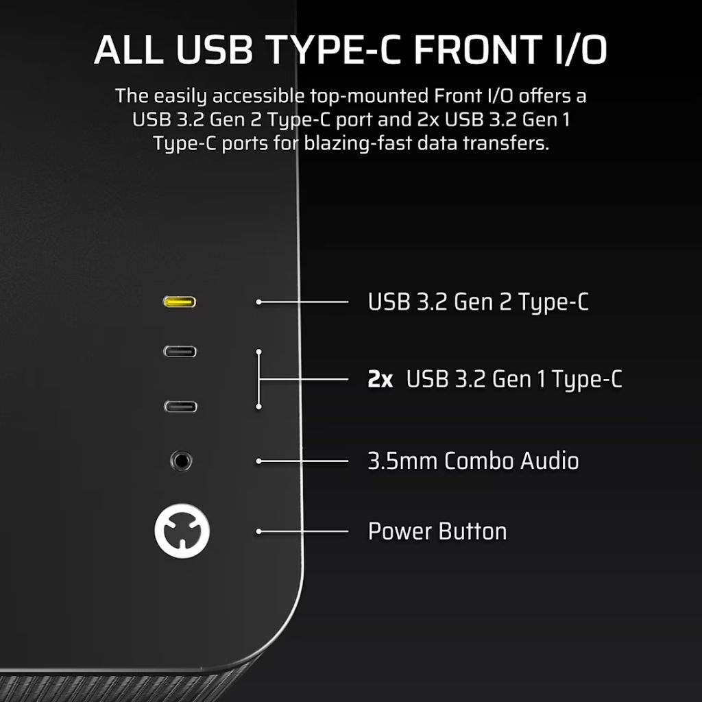 | Side Panel | Panoramic Hinged Tempered Glass, Bottom Mesh Vented Intake, Mesh Right Side Panels |