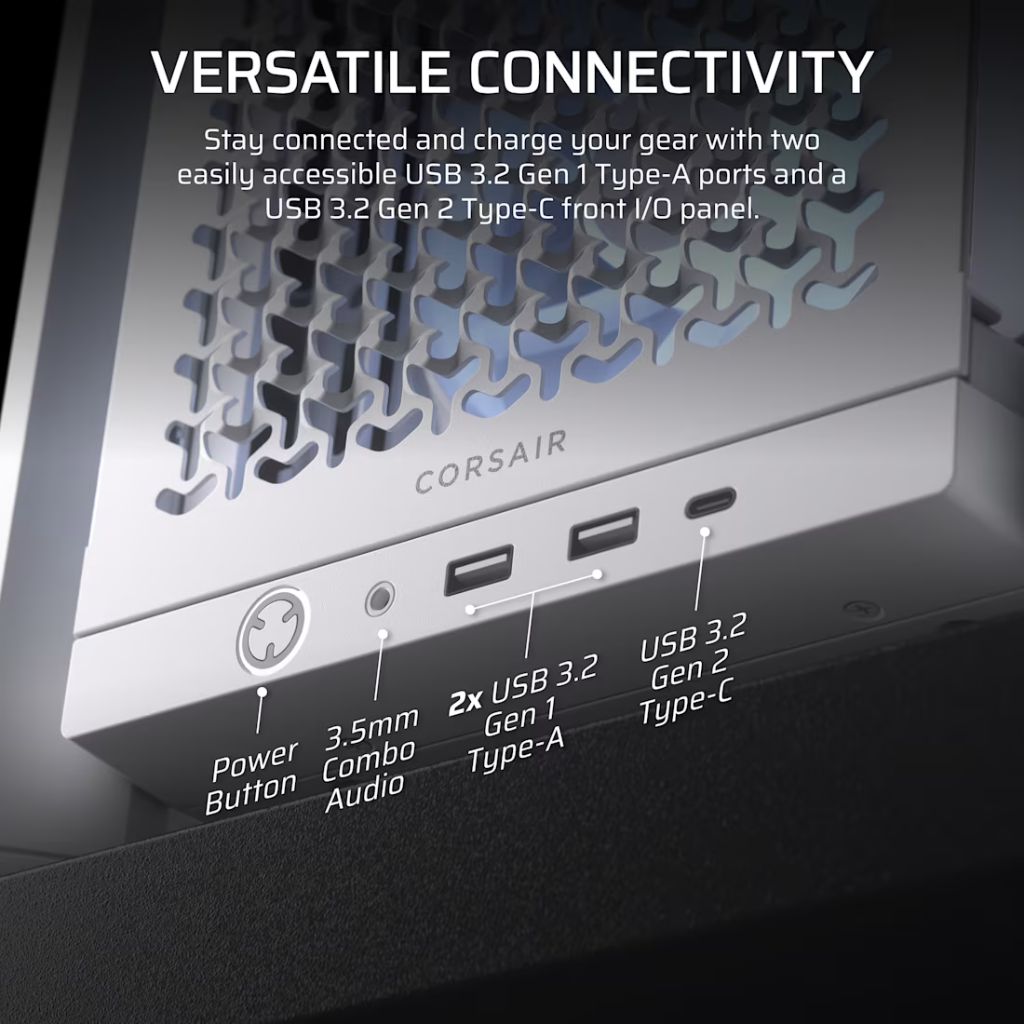 - Three Pre-Installed ARGB Fans – Stunning addressable RGB lighting with powerful airflow, customizable via Corsair iCUE (controller required).