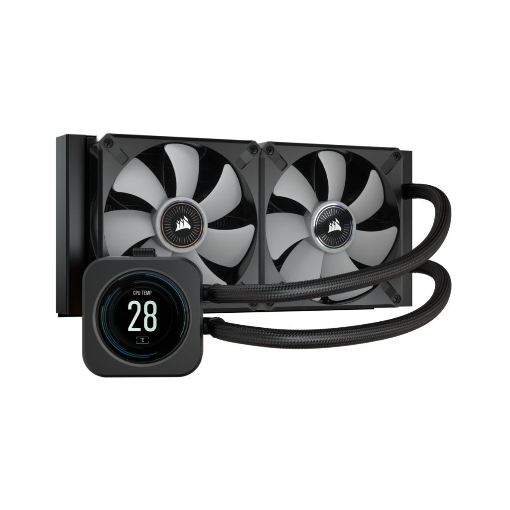 - The CORSAIR iCUE H100i ELITE LCD Display Liquid CPU Cooler delivers powerful, customized cooling for your CPU, with a personalized LCD screen and two cutting-edge CORSAIR ML120 RGB ELITE PWM fans.
