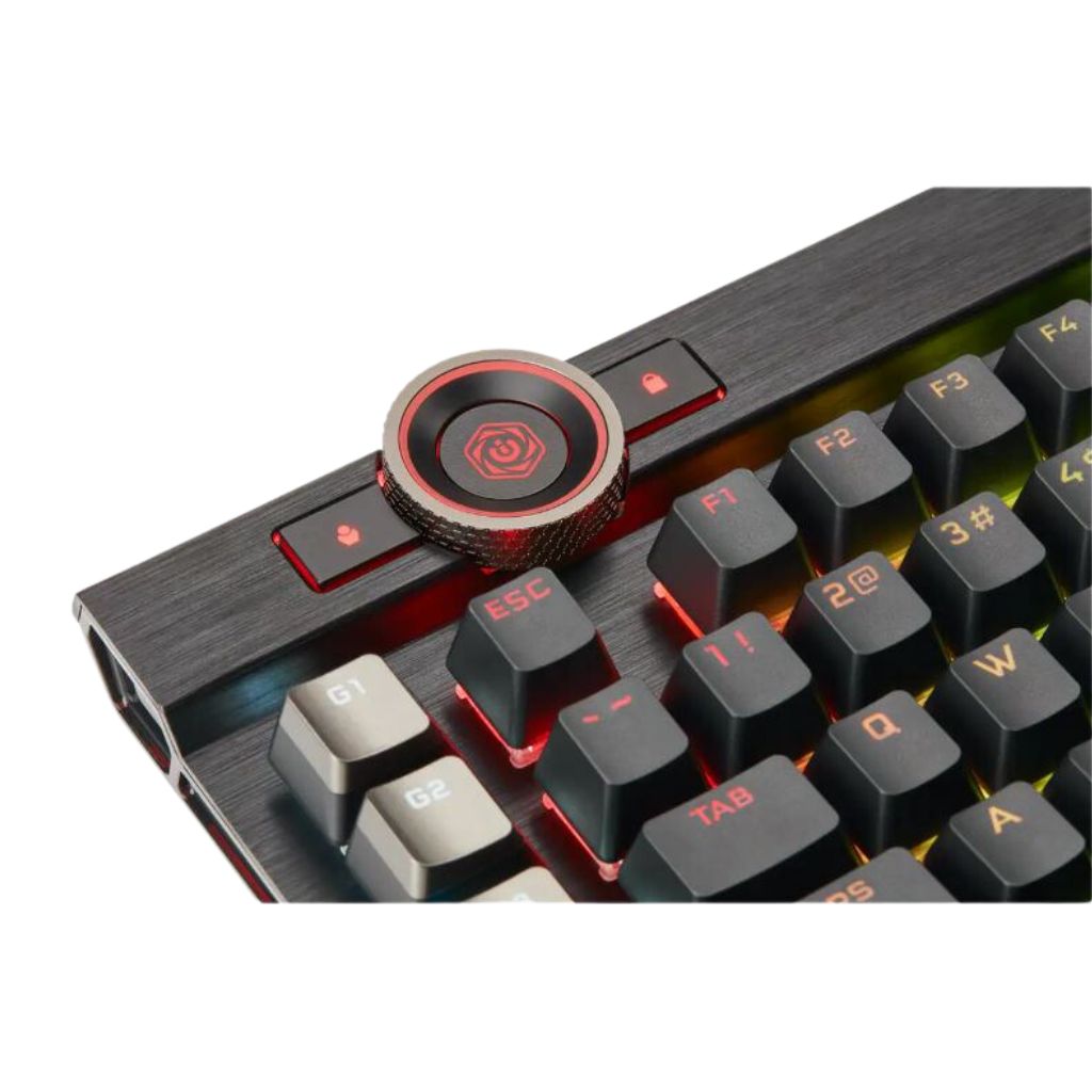 - Take command over backlighting, media jogging, and more with a multi-function iCUE control wheel, fully programmable to perform custom actions in games and applications.