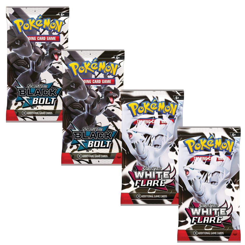 - 4 Booster Packs from Special Expansions – Contains 2 Scarlet & Violet—Black Bolt and 2 Scarlet & Violet—White Flare packs featuring more Pokémon from the Unova region.