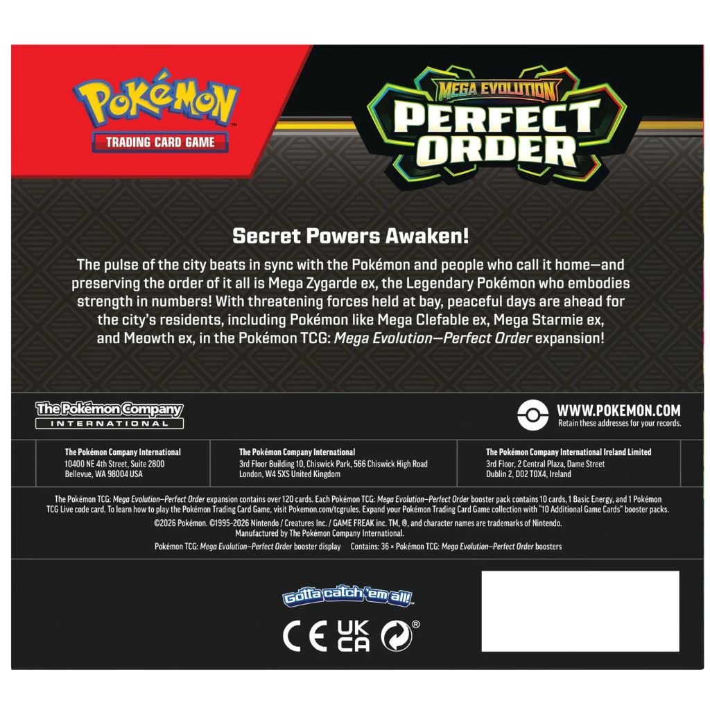 | Includes: | – 36x Mega Evolution Perfect Order Booster Packs |