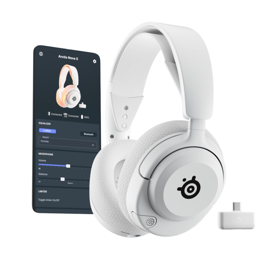 SteelSeries Arctis Nova 5 Multi-Platform Quick-Switch Bluetooth 2.4GHz Wireless Gaming Headset White – 61671