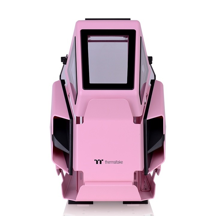 The AH T200 Pink is a limited-edition version of the AH T200 Micro Chassis. It is forged with a sturdy, air-force styled architecture with a pink body, two large 4mm tempered glass panels on the left and right sides, and three 3mm tempered glass windows at the front. I/O ports are located at the top-front panel with a futuristic power button.